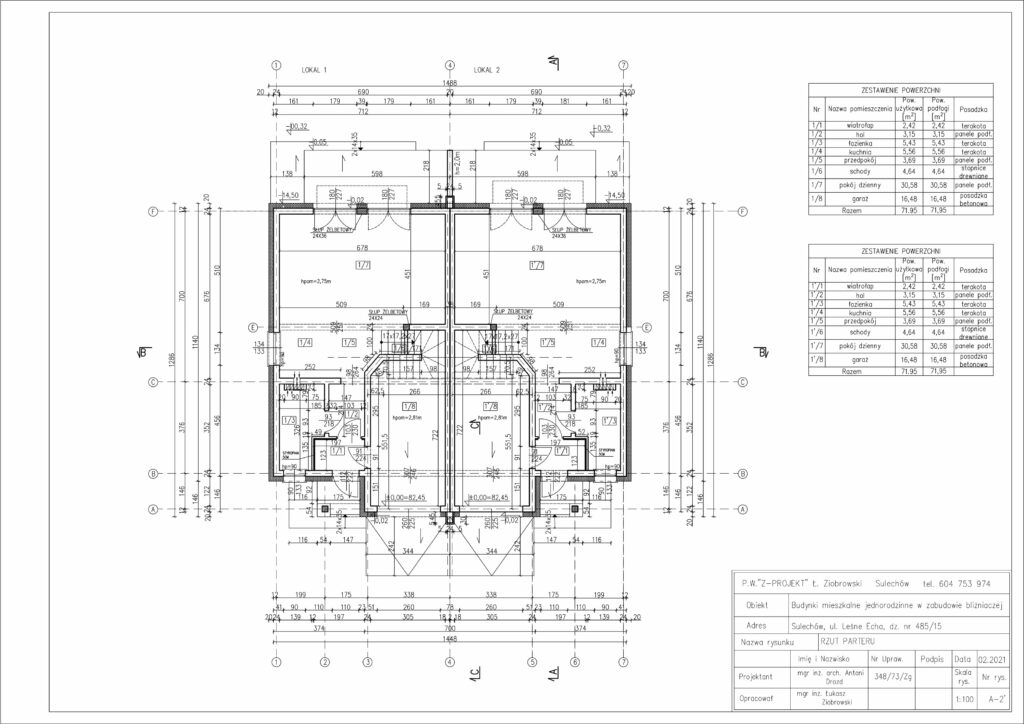 - Ścianki działowe na parterze: murowane z bloczków gazobetonowych na zaprawie klejowej,
