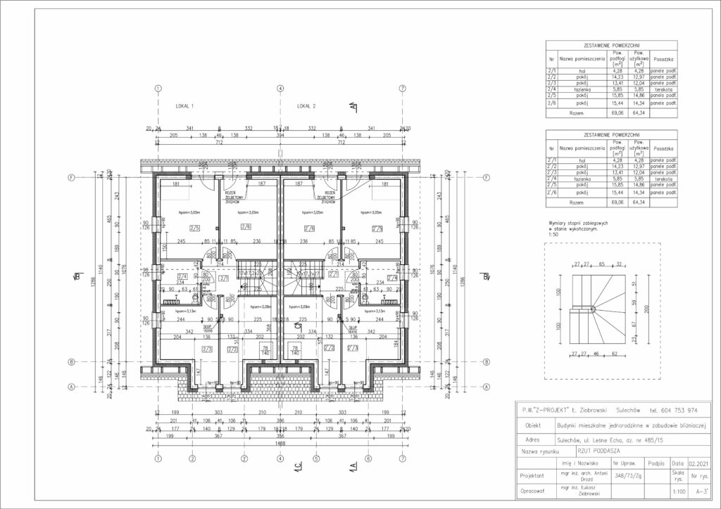 - Sufity na poddaszu: z płyty G-K na profilach stalowych z wypełnieniem z wełny mineralnej.